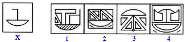 In each of the following questions, you are given a figure (X) followed by four alternative figures (1), (2), (3) and (4) such that figure (X) is embedded in one of them.