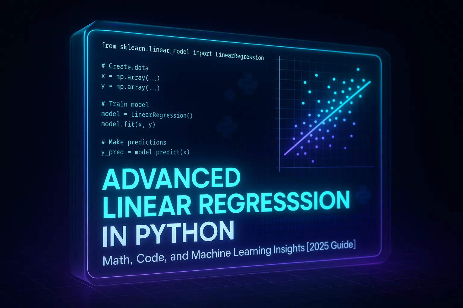 If you’re brand new, pause here 👉 Linear Regression Basics in Machine Learning (Beginner’s Guide 2025). That’s where regression starts simple — just one line, one variable, and one prediction. Now, we go beyond the basics into Advanced Linear Regression in Python — where math meets code, and where theory becomes machine learning practice.