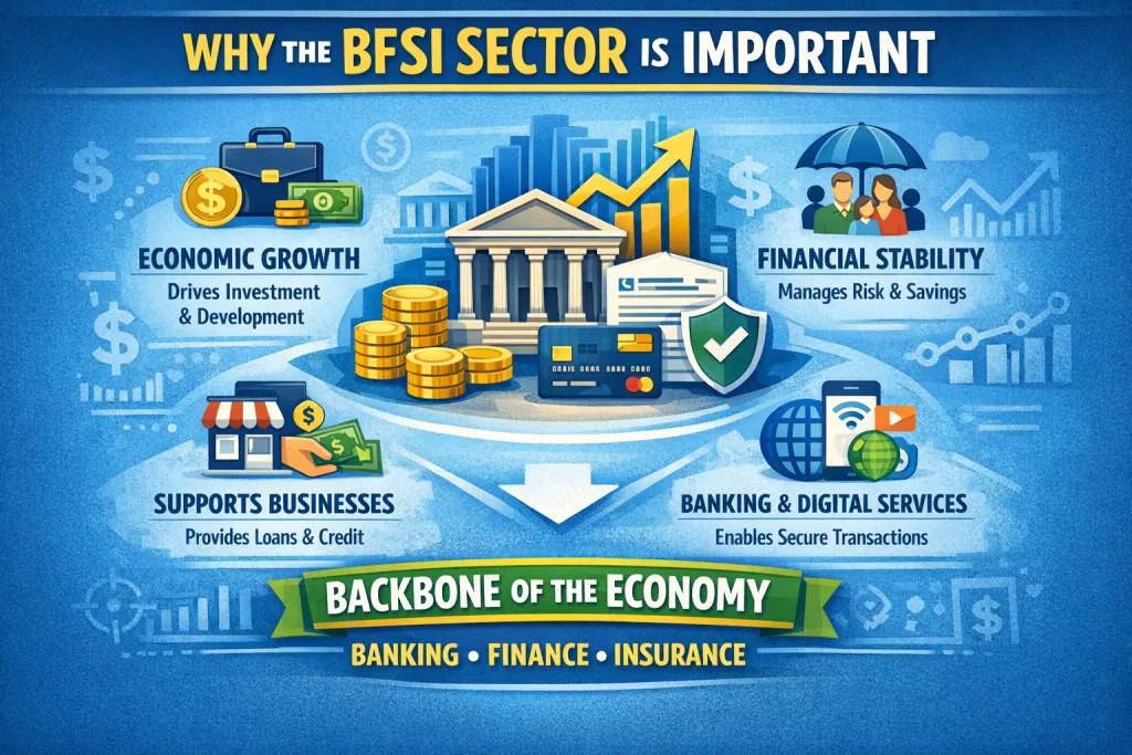 Today, the BFSI sector is growing faster than ever. Thanks to technology, mobile banking, digital payments, online insurance, and fintech innovations, this industry has become more modern, accessible, and full of opportunities.