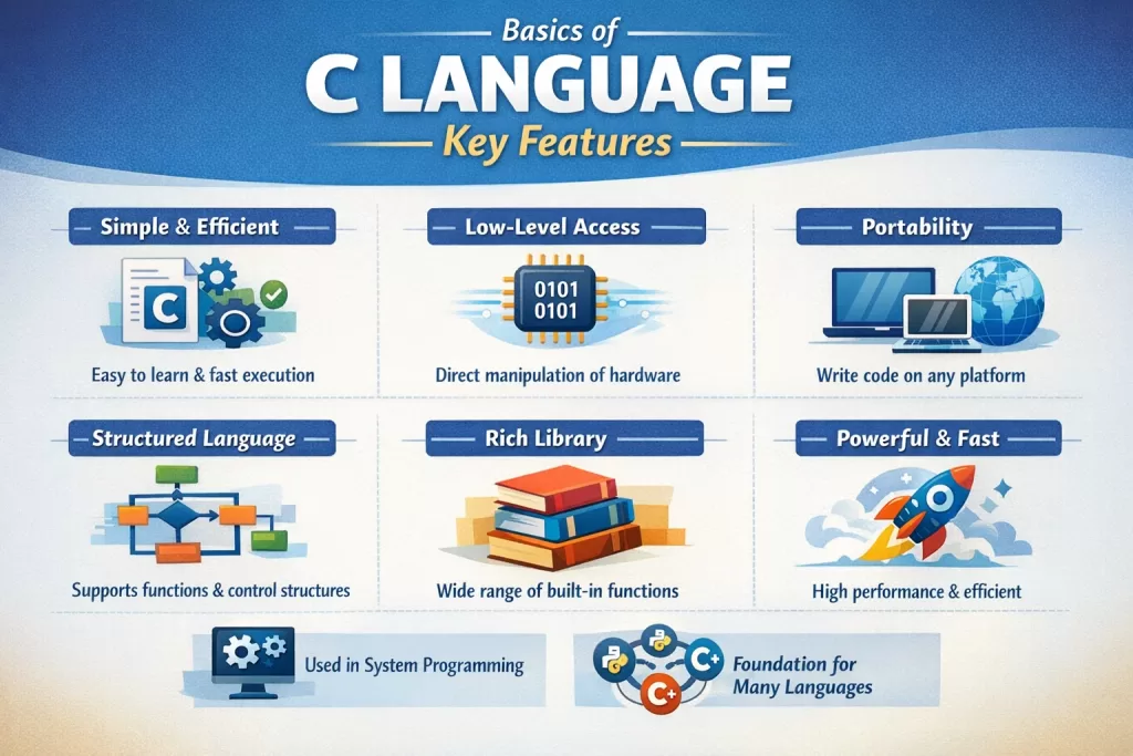 What makes C special is its simplicity combined with power. It lets you write low-level code while still maintaining a high-level structure. This is why it is often called a “mid-level” language.