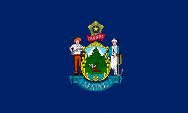 - Maine Flag : The state coat of arms is placed on a blue field.