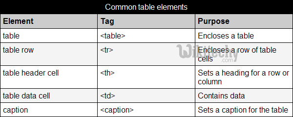 Drei verschiedene Elemente werden benötigt, um Tabellen zu erzeugen: