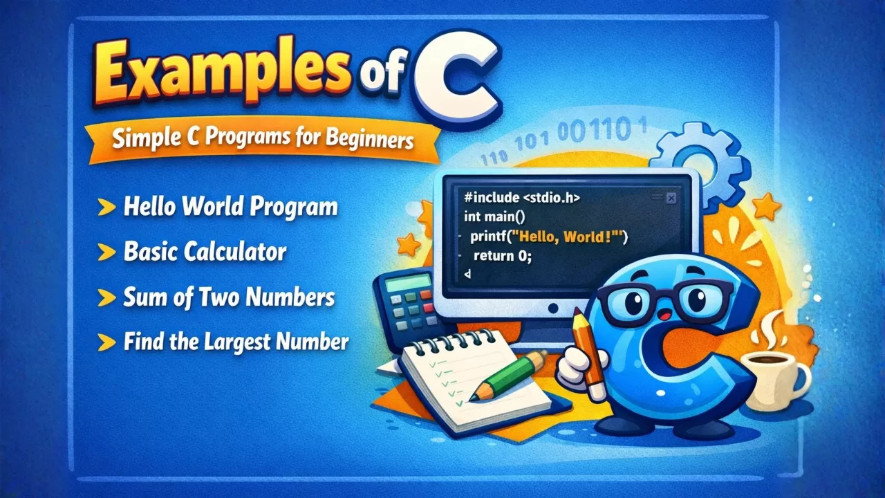 In this guide we share simple C programs to help you learn faster. Whether you need to do math use loops or check conditions these C examples cover what you need to know. We include explanations, working code and expected outputs so you can check your understanding right away.