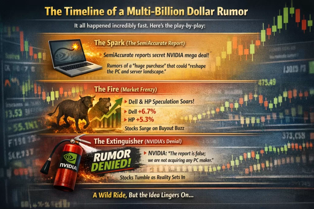 For a few chaotic hours, the entire tech and finance world was convinced of a NVIDIA Rumor that the tech gaint was about to make a move that would fundamentally reshape the computer industry forever. A wild rumor surfaced that the AI chip giant was in talks to buy a major PC manufacturer.