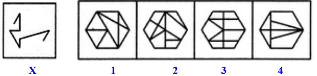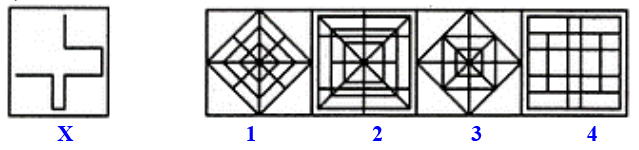 In each of the following questions, you are given a figure (X) followed by four alternative figures (1), (2), (3) and (4) such that figure (X) is embedded in one of them.