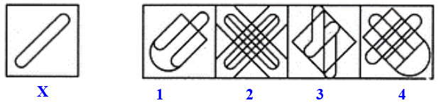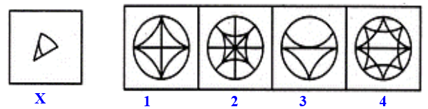In each of the following questions, you are given a figure (X) followed by four alternative figures (1), (2), (3) and (4) such that figure (X) is embedded in one of them.