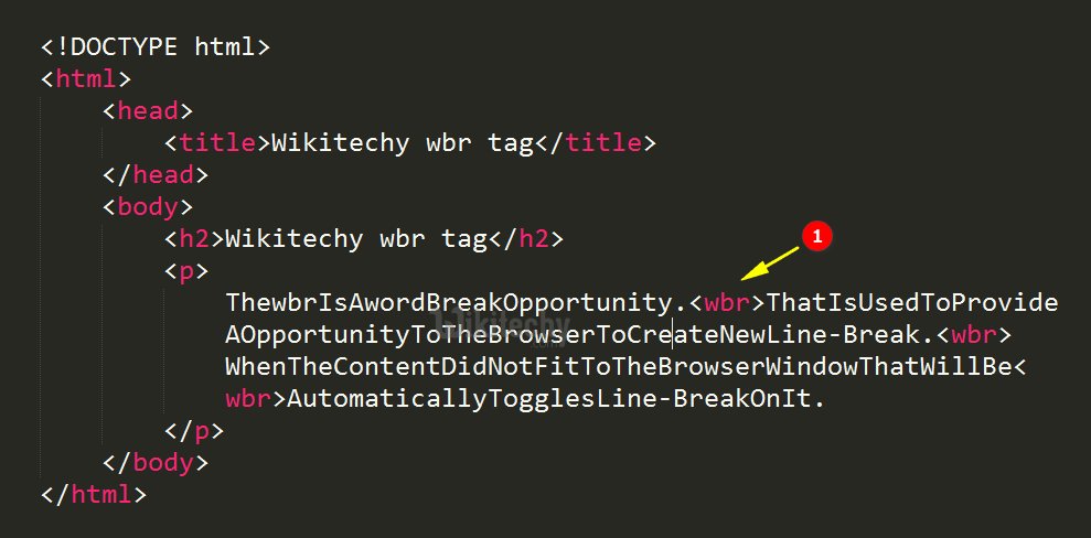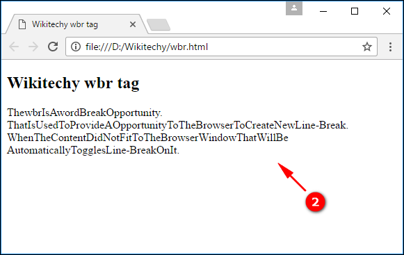 - The output shows that the text in a paragraph. The pointed places has a <wbr> tag But it does not create line-break always.