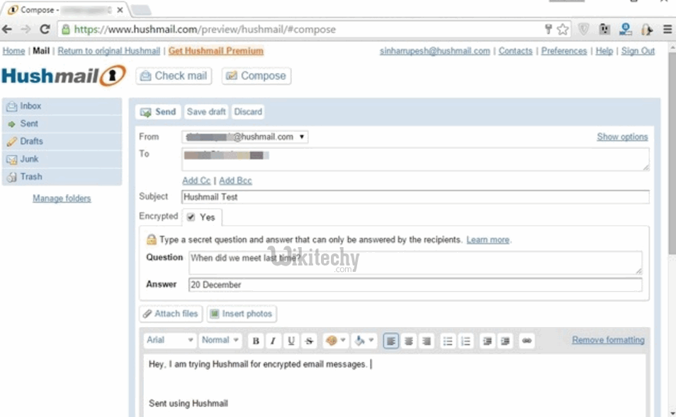 The popular email client packs in end-to-end encryption using industry standard algorithms such as OpenPGP standard. The service also protects all the traffic on its server with HTTPS. In our usage, we found the web client of the service to be easy to use. We just need to create a Hushmail account and once we done, we can easily send encrypted emails to anyone we want. While sending an email with Hushmail, we will have to tick the Encrypt box and select a secret question with an answer, which your recipient will also have to answer to open the mail.
