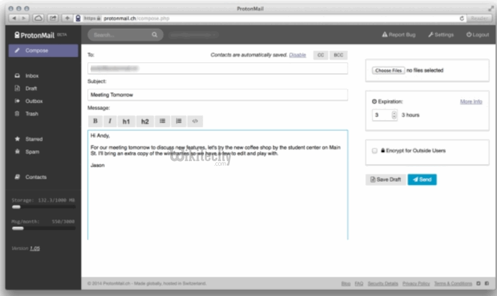 Proton Mail is an email encryption client and it brings some very cool unique features. The service really takes its security features seriously, as there’s a password for not only the account we make but also to encrypt all of your data and a password for each encrypted email we can send. The emails send through Proton Mail are end-to-end encrypted and the company also claims that no user data or any encrypted emails can be accessed by them. The web client of the service is easy to use and we can easily send encrypted emails to any other Proton Mail user, while people on the usual email accounts (Gmail, Outlook etc..) will get a link, where they can enter the password and access the encrypted mail. All the connections in Proton Mail are SSL secured and there’s also the ability to set a timer on mails to self-destruct.