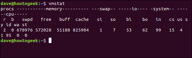 - swpd: The amount of virtual memory used, i.e., how much memory has been swapped out.