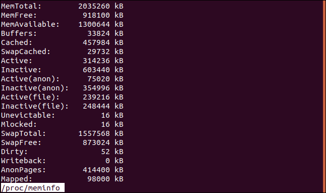 - MemTotal: Total usable RAM (apart from a few reserved bits and the kernel binary code).