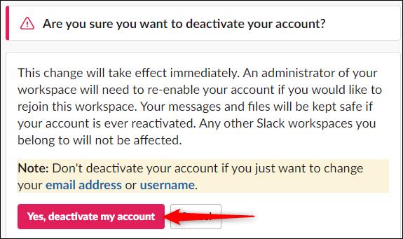 A warning message will appear asking you to confirm you would like to deactivate the account. Read the content and, if you’re sure, select “Yes, Deactivate My Account.”