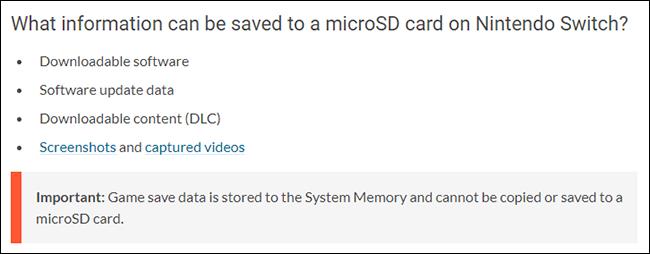 According to Nintendo, only screenshots and gameplay videos you capture yourself can be moved from system memory to a microSD card, and vice versa. Game save data can’t be copied to your microSD card.