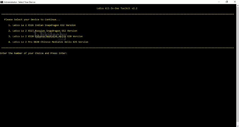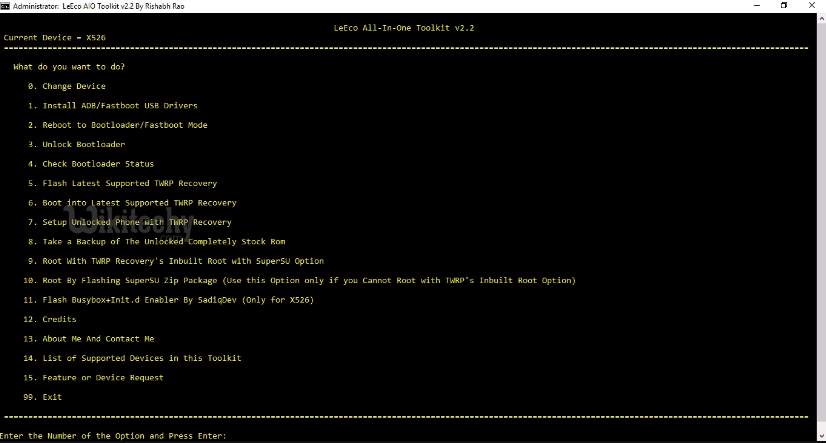 Now press ‘5‘ to install TWRP, and ’10’ to Root Le 2 device.