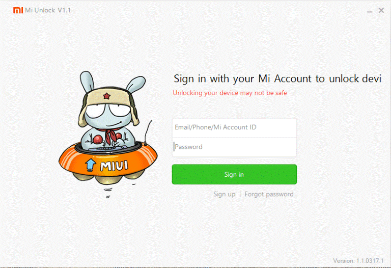 Step 1. Download the Mi Unlock app to PC, and sign in with your Mi Account;