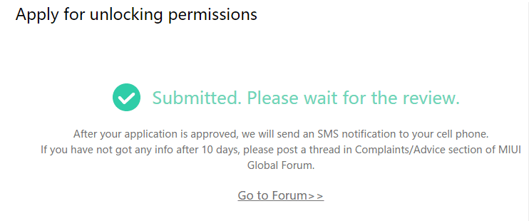 - Now click on the “Go” button or use Go to MIUI Unlock page to receive the unlocking permission.