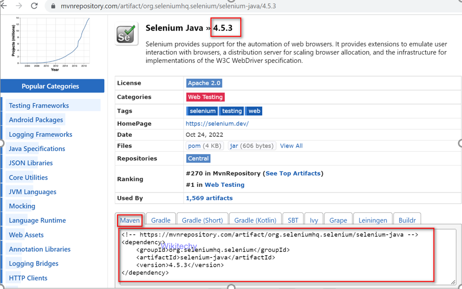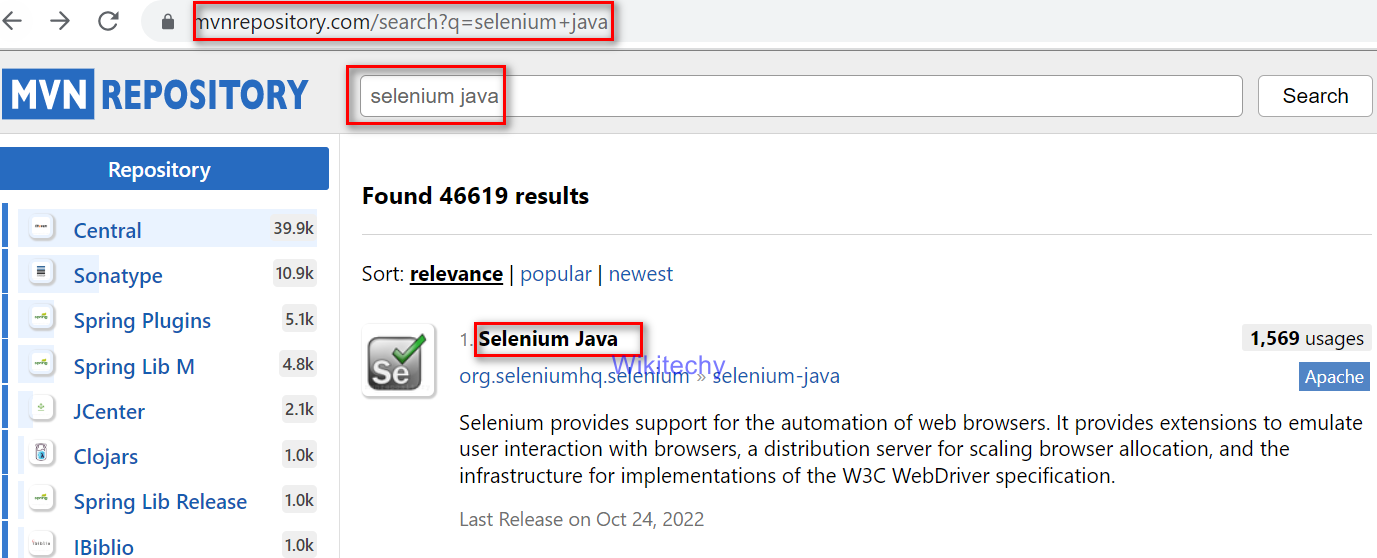 Open this URL : https://mvnrepository.com/ and search Selenium Java.