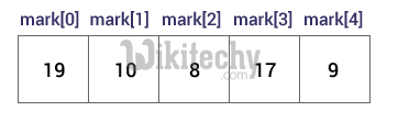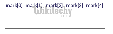 float mark[5];- Here, we declared an array, mark, of floating-point type and size 5. Meaning, it can hold 5 floating-point values.
