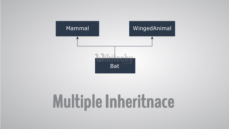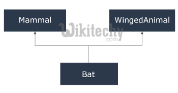 - For example: A class Bat is derived from base classes Mammal and WingedAnimal. It makes sense because bat is a mammal as well as a winged animal.