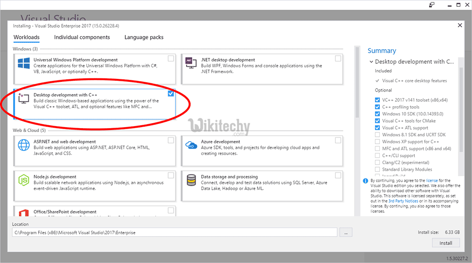 - When you run the installer, you’ll eventually come to a screen that asks you what workload you’d like to install. Choose “Desktop development with C++”.