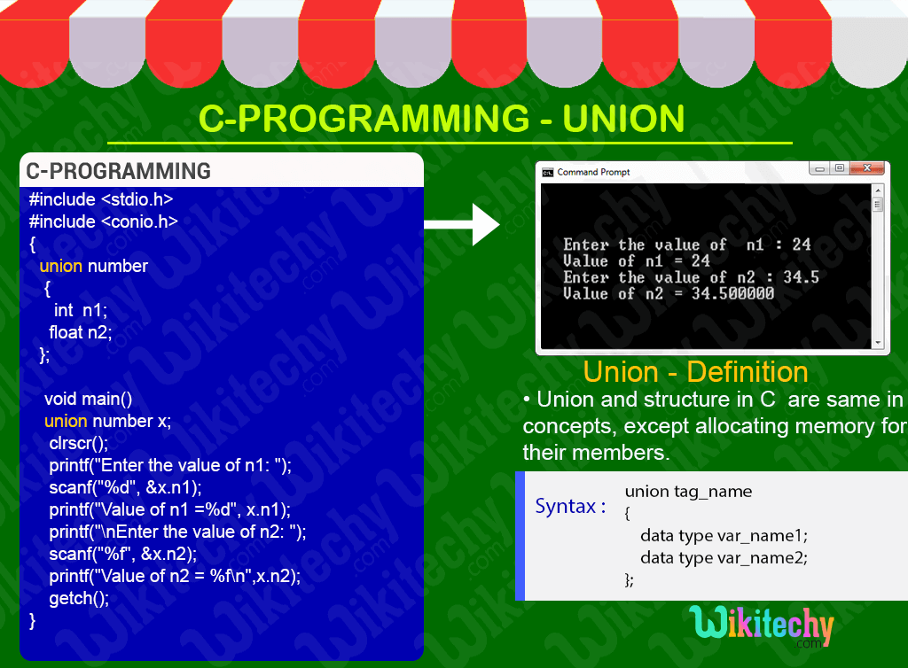 - Union and structure in C - Programming are same in concepts, except allocating memory for their members.