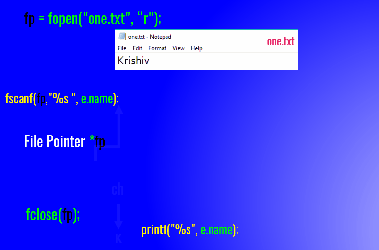 - Here in this printf statement we print the text file as string.