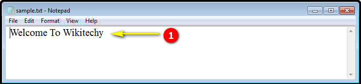 - Here in this output the written statement “WelcomeToWikitechy” in the sample.txt file using fprintf function as shown here.