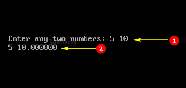 - Here in this output “Enter any two numbers: “ is represented in printf statement.
