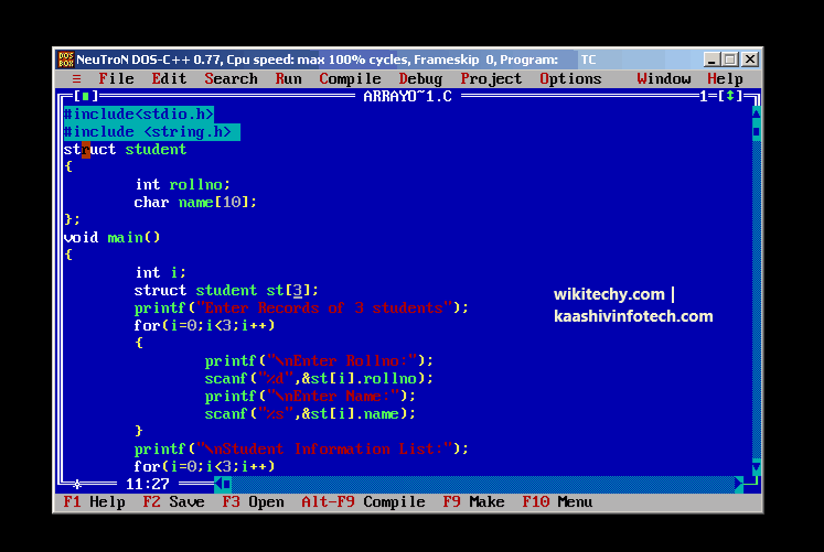 printf("\nRollno:%d,Name:%s",st[i].rollno,st[i].name);