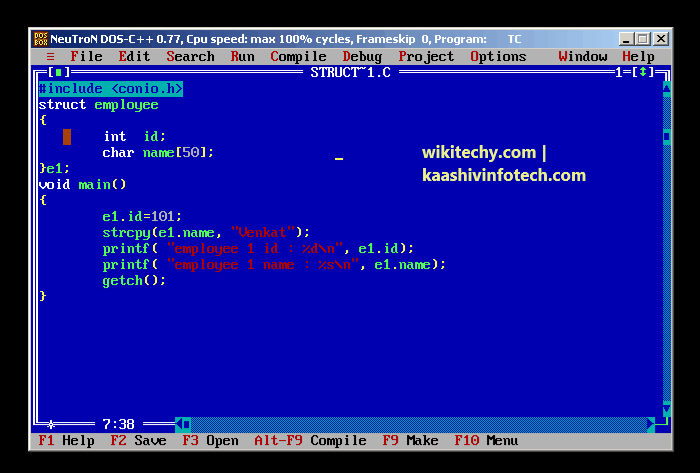 strcpy(e1.name, "Venkat");