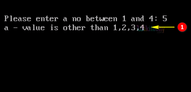 - Here in this output we have entered the number 5, which will switch to “default” so the output of “a-value is other than 1,2,3,4”.