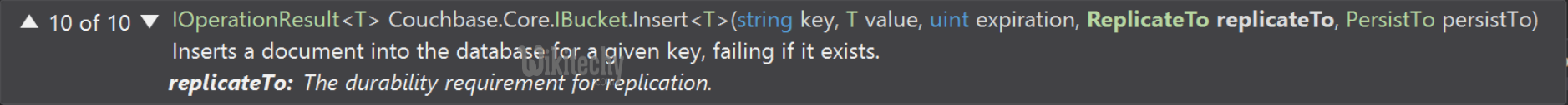 bucket.Insert("MyUniqueDocumentKey", dataObject, 10); // Insert a document with 10 seconds TTL - or you can use a TimeSpan Clicking "Copy Code" button will copy the code into the clipboard - memory. Please paste(Ctrl+V) it in your destination. The code will get pasted. Happy coding from Wikitechy Couchbase tutorial team