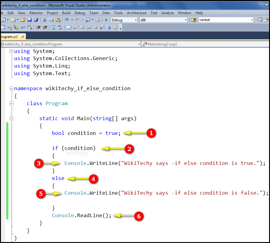 Console.WriteLine("WikiTechy says -if else condition is true.");