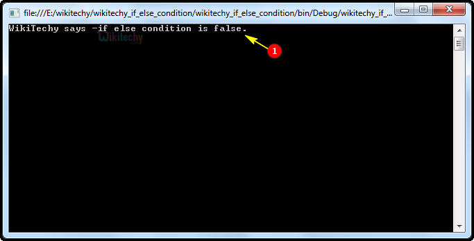 - Here the output executes else statement by printing the statement "WikiTechy says -if else condition is false".