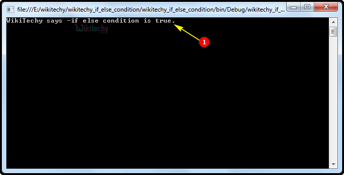 - if (condition)specifies to If the condition is true then the control goes to the body of if block, that is the program will execute the "WikiTechy says -if else condition is true".