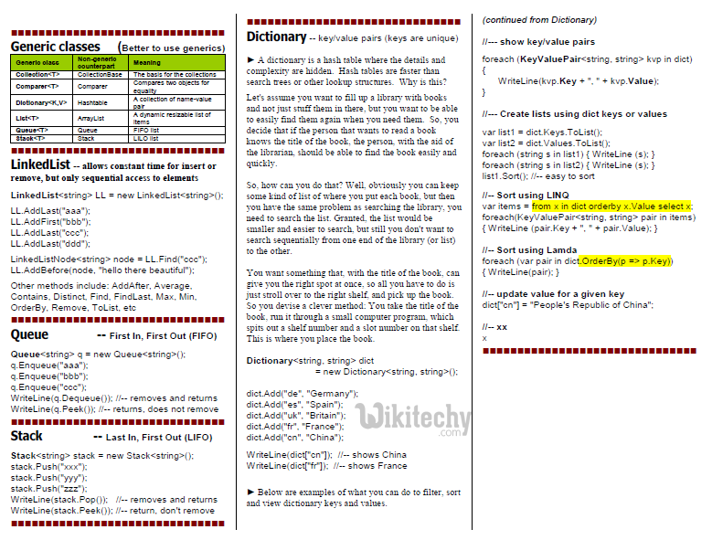 - It can have duplicate elements. It is found in System.Collections.Generic namespace.