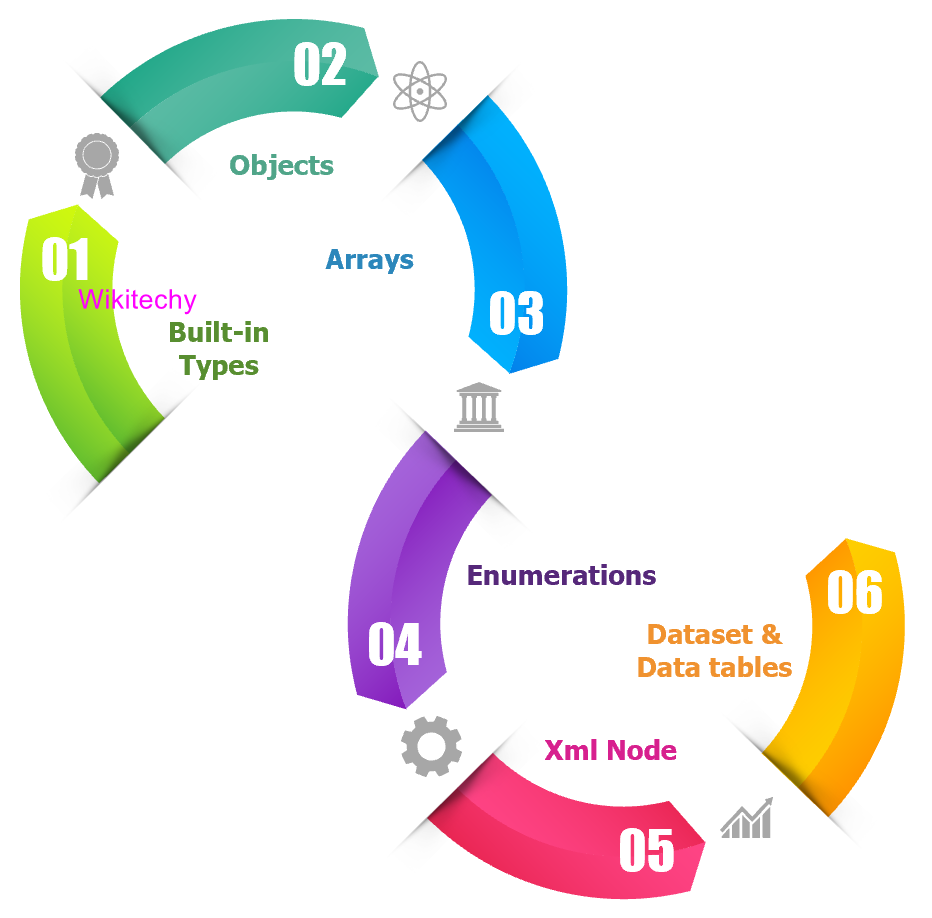 - In C#, web services use the built-in data types like short, int, long, short, float, char, byte, string, and Date Time.