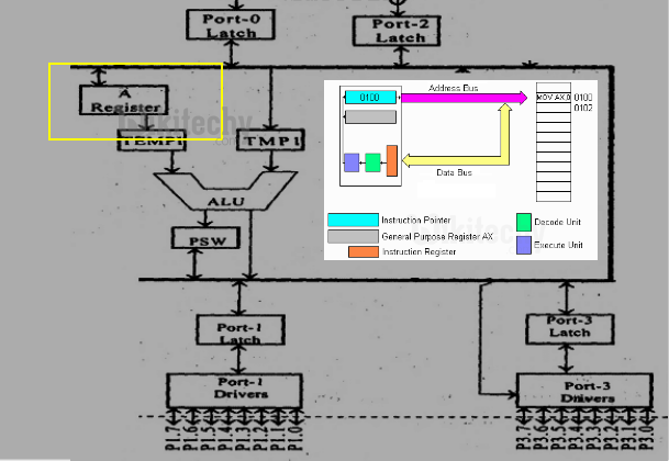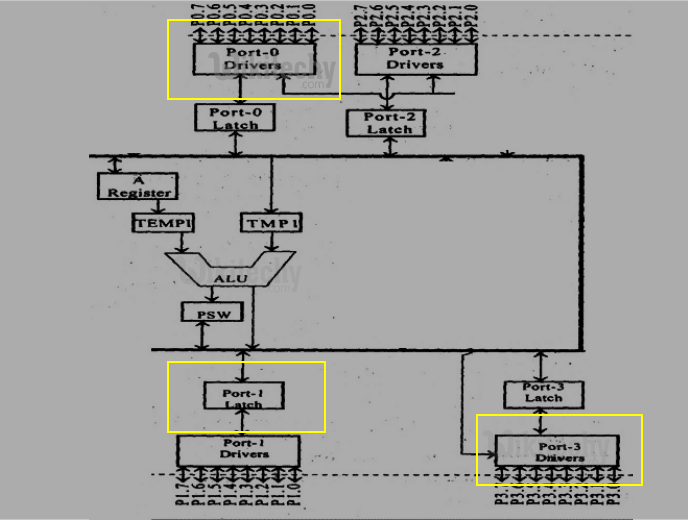 Ports (0-3): There are 4 bidirectional input/ output ports of 8 bits each.