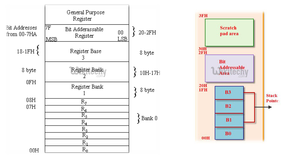 - It is an 8 bit register. This pointer can point any location in the internal data RAM from 0 - 127.