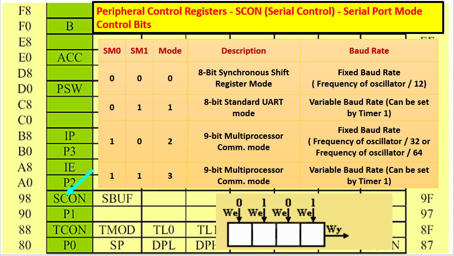 SCON (Serial Control) - Serial Port Mode Control Bits in 8051 Microcontroller