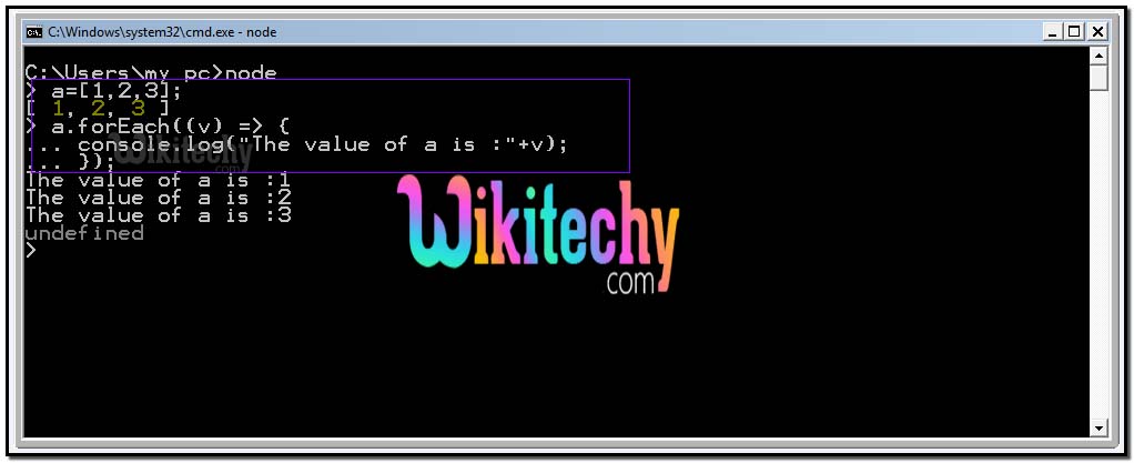Learn Nodejs - Nodejs tutorial - nodejs foreach loop code output - Nodejs examples - Nodejs programs