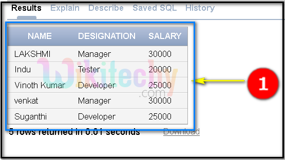 - MAX (Salary) function is being used to show the maximum salary from the table “wikitechy_char”.