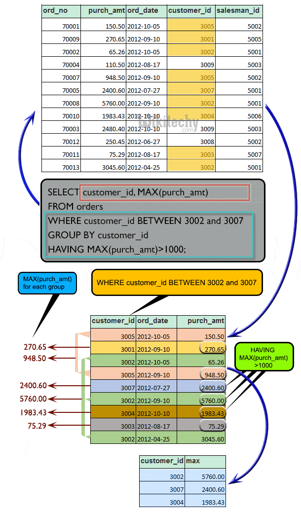 SELECT MAX (Salary) FROM wikitechy_char; click below button to copy the code. By - oracle tutorial - team
