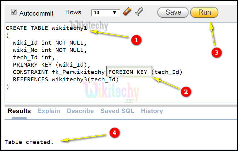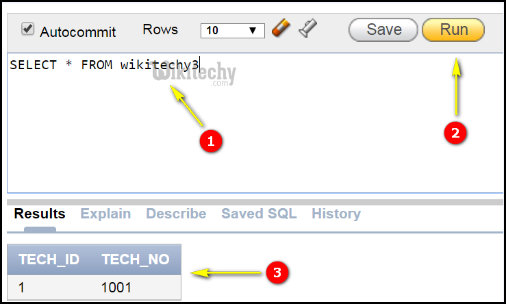 - CREATE TABLE statement is used to create a new table in oracle database and ‘wikitechy3’ is the created table name.
