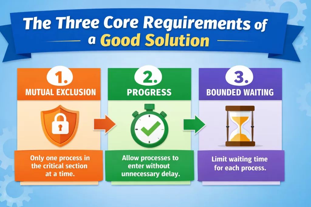 Understanding and solving this problem is fundamental to designing robust, efficient, and reliable operating systems and concurrent programs. Solutions range from low-level interrupt control and atomic operations to high-level mutexes and monitors — each with its own trade-offs.